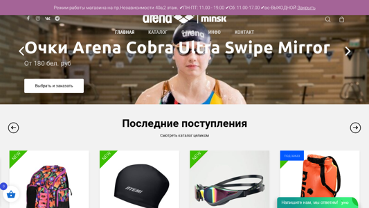 | SEO-описание | Продажа товаров для плавания торговой марки Arena® по лучшей цене с доставкой по всей Беларуси. Официальный магазин для плавания. A1 / Viber +375296721003 |
