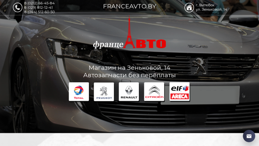 | AI-анализ | --- The web project "ФранцеАвто.BY" is a garage parts store specialized in French car models and other brands. According to the provided data, the store offers both original and generic parts of various pricing categories. The keywords suggest that the store stocks auto parts for Peugeot, Renault, and other automobile brands. The top words indicate that visitors frequently search for availability and contact information, as well as filters and systems, particularly for brake and torso parts. The store is located in Vitsebsk, Belarus, on Zhenkovskaya Street 14, and can be reached via several phone numbers. The store's description emphasizes its extensive experience and knowledgeable staff, as well as long-standing partnerships with suppliers and competitive pricing. The site also offers used parts in good condition for lower prices. The store caters to both physical and legal entities and provides a warranty on |