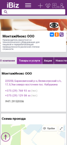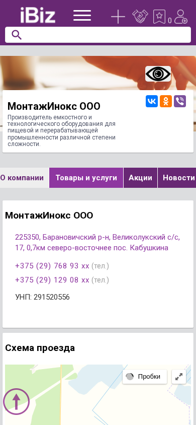| AI-анализ | The website is for МонтажИнокс OОО, a Belarusian company producing tank and technological equipment for the food and processing industries of various complexities. The company's address is given as 225350, Velikoluksky s/s, 17, 0.7km northeast of the settlement of Kabushkina. Contact information, including two phone numbers, is provided. The website includes sections for company information, products and services, news, announcements, vacancies, videos, and customer reviews on various social media platforms. Business hours are listed as Monday through Friday, 8:00am to 5:00pm, with no breaks for lunch. The website is categorized under industrial equipment in the Baranovich region. |
