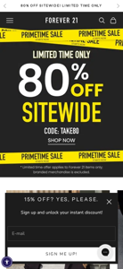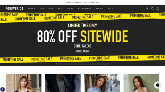 | AI-анализ | --- This online resource, titled "Forever 21," offers customers the opportunity to shop the latest trends and must-have styles in women’s, men’s, plus-size, and kids' fashion, as well as accessories and beauty products, with everyday low prices and regular styling drops. The website includes sections for women, men, and kids, with various categories such as tops, dresses, activewear, denim, and jackets. Additionally, there are separate sections for accessories and beauty products. The site features sales and discounts, including a current 80% off sitewide sale, and offers free shipping on orders over $75. The navigation menu allows users to easily browse and filter products by category, bestsellers, and brand. |