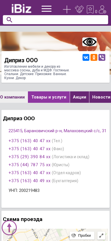 | Название / Заголовок | Диприз ООО - Изготовление мебели и декора из массива сосны, дуба и МДФ. Гостиные. Спальни. Детские. Прихожие. Ванные. Кухни. Декор.. 225415, , Малаховецкий с/с, 31 |