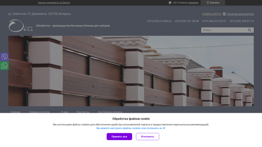 | AI-анализ | The website <obisbeton.by> is for ObisBeton, a Belarusian company that produces and sells concrete blocks for decorative fences and posts. The homepage includes information about the company's contact details, products, and services. The top keywords on the site are 'ObisBeton', 'concrete blocks', 'fences', 'posts', and 'contact'. The site also mentions specific product offerings, such as 'ornamental blocks' and 'decorative caps'. The company provides contacts for Velcom and MTC, suggesting that these may be sales channels. The site is available for sale on Deal.by, with no customer reviews. The company's address is given as ul. Sovietskaya, 27, Dzerzhinsk, 222720, Belarus. The site operates from Monday to Friday. |