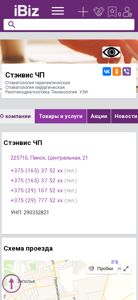 | AI-анализ | This website is a business website for Stenvis CP, a medical center located in Pinsk, Belarus, at Centralna 21. The website offers therapeutic and surgical dentistry, radiology diagnosis, gynecology, and ultrasound services. The contact information for the center includes multiple phone numbers, and the business registration number (UNP) is provided. The website also includes a map for directions, business hours, and a listing of services. Additionally, there are sections for company information, news, job postings, videos, customer reviews, and links to social media accounts. The website is categorized under medical centers and services in Pinsk. |