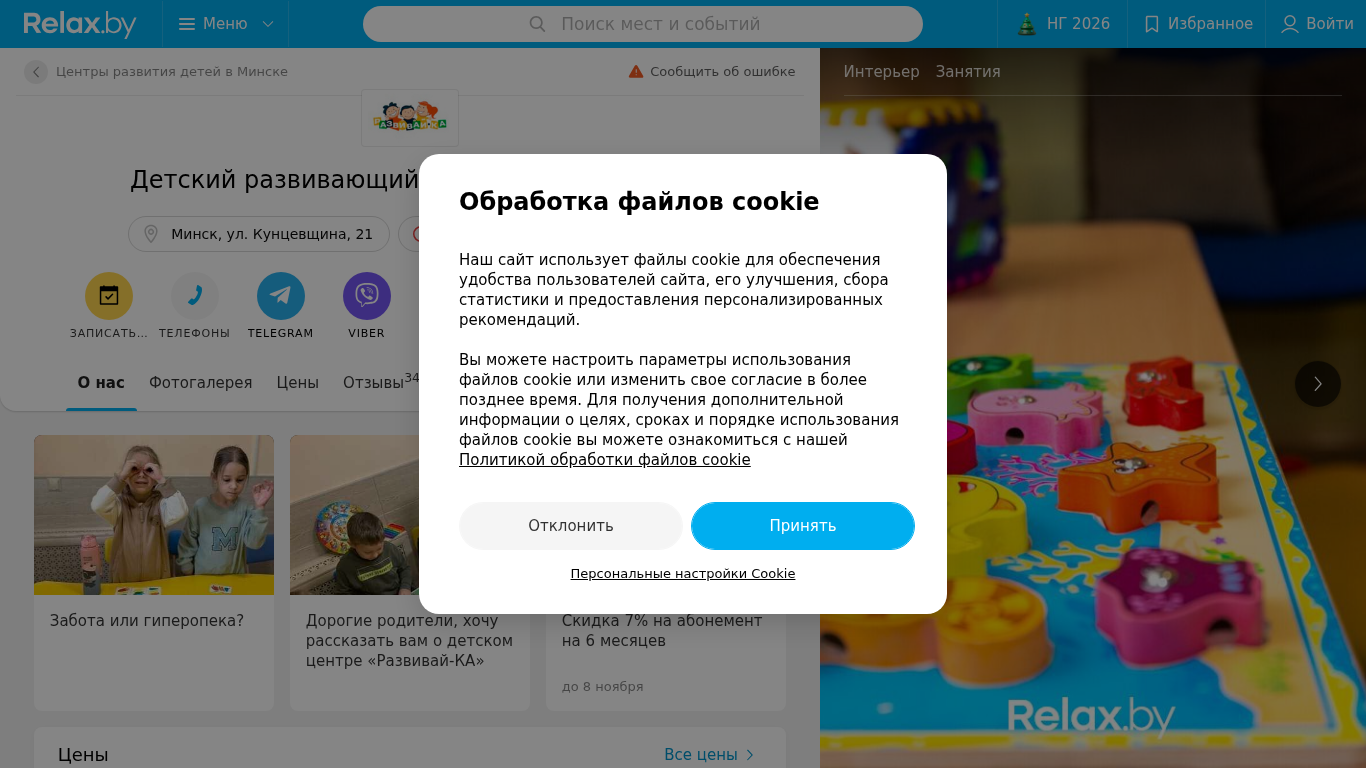| SEO-описание | Центр развития детей РазвивайКА в Минске, ул. Кунцевщина 21 – отзывы, телефоны, адрес на карте, график работы и карта проезда на Relax.by |