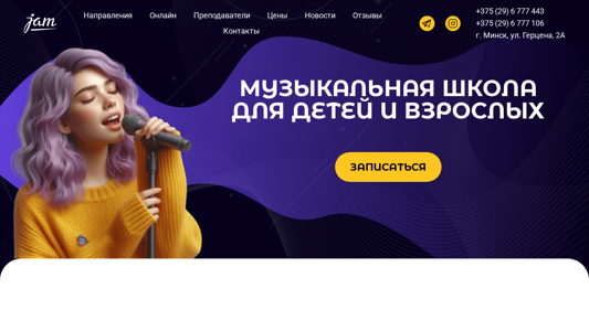 | SEO-описание | Музыкальная школа JAM в центре Минска. Обучение в любом возрасте по эффективным западным методикам. Первое занятие бесплатно! |
