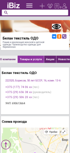 | AI-анализ | This website is for Belan Textil ODO, a textile company in Borisov, Belarus, specializing in sewing and selling women's and children's clothing, as well as producing maternity wear. The website provides contact information, including phone numbers for the company and its manager, and an address with a map for easy access. The company's operating hours are listed as Monday through Friday from 9:00am to 6:00pm without lunch breaks. The domain is registered under the .by top-level domain. The website also includes a section for announcements, vacancies, and customer reviews on social media platforms. The company is listed in the "Clothing" category on the Yandex Business Directory. |