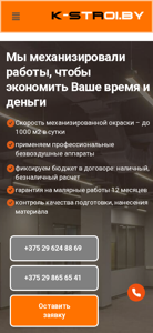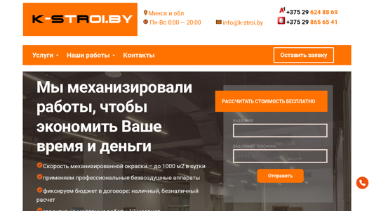 | AI-анализ | The web project "Mechanized Painting of Walls, Ceilings, Facades in Minsk by K-stroy" offers mechanical painting services for walls, ceilings, and facades in Minsk and its surrounding regions. The company uses professional airless paint sprayers and guarantees the work for 12 months with a quality control. The services include mechanized plastering, painting, decorative plastering, liquid hydro-isolation, and sandblasting. The company provides information on their past projects and accepts inquiries and quotes through their contact details. The website offers a free cost estimation and information on prices for their services in Belarus. The mechanized painting process saves time and money by applying up to 1000 square meters per day with professional airless sprayers. The company offers a contract with a fixed budget for the painting services. The website also provides information |