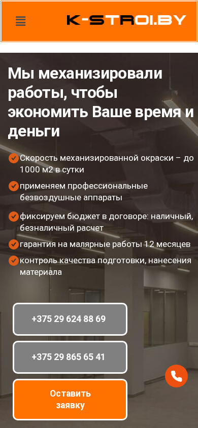 | SEO-описание | Механизированные работы по окраске стен, потолков, фасадов ✅ Профессиональные безвоздушные аппараты ✅ Договор ✅ Гарантия 12 мес ✅ Контроль качества ☎ 8029 865-65-41 |