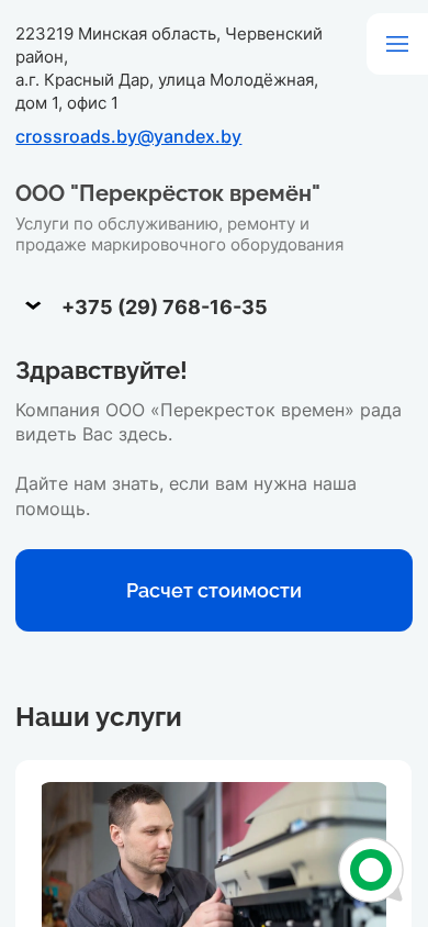 | Название / Заголовок | Ремонт и обслуживание маркировочного оборудования в Минске - ООО "Перекрёсток времён" |