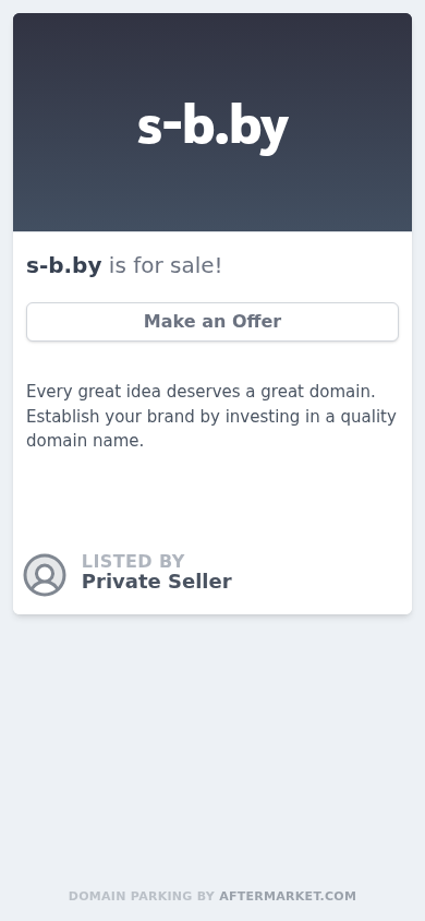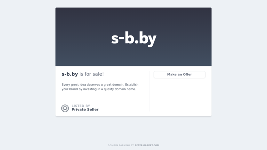 | AI-анализ | country: Belarus The website s-b.by is currently being offered for sale. It is a Belarusian .BY domain with the title "Aftermarket.com" and no apparent description or keyword data provided. The domain name includes the letters "s-b" and could potentially be suitable for a business related to islands, offers, or Saint Republics, given the top words associated with the domain. The domain is listed by a private seller and potential buyers are encouraged to make an offer. |