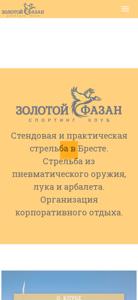 | AI-анализ | language: ru The web project "Золотой Фазан | Спортинг клуб" is a sporting club that offers quality leisure time at affordable prices. The club, named "Золотой Фазан," is located in Brest and specializes in shooting sports, including pneumatic weapons, bows, and crossbows. The club also organizes corporate events. Visitors are encouraged to make reservations in advance to ensure a successful and enjoyable experience. The website contains information about the club, its services, corporate events, and a gallery. The domain is registered to IT Tech. Group and the language is Russian. |