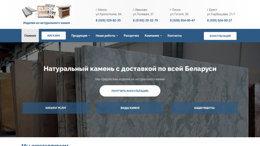 | AI-анализ | This website is a natural stone supplier in Belarus with delivery services throughout the country. The company offers various stone products including paving stones, countertops, fireplaces, and monumental structures from its locations in Minsk, Ivanovo, Pinsk, and Brest. The company's product range includes pavers, steps, countertops, fireplaces, and various architectural details. The website also mentions a catalog, financing options, and customer reviews. The company Eurokaemen is one of the largest suppliers of decorative stone materials for both interior and exterior use in buildings and structures. Their products are known for their high quality, which caters to even the most discerning tastes, and come in a wide range of colors. The company offers a wide selection of stone products at competitive prices directly from the manufacturer, making it a reliable and cost-effective partner for purchasing natural stone products. Architect |