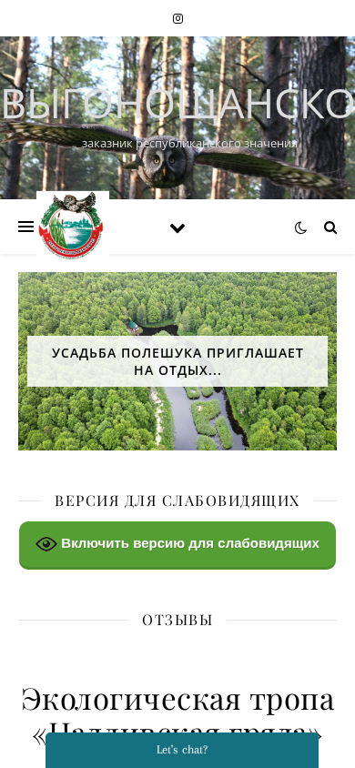 | AI-анализ | --- The portal vygon.by is dedicated to the Vygonosky Reserve, a protected area of national significance in Belarus. It provides information about the reserve's management, its flora and fauna, and various activities available, including educational ecology, tourist routes, photography, hunting, and fishing. The website offers three hiking trails of different lengths, all circular, and a water trail. The reserve is home to a wide range of plants and animals, and visitors can observe various species during their visit. The website includes a photo gallery, video gallery, and news section, providing visual content of the reserve's landscapes, flora, fauna, and fishing techniques. The reserve also offers accommodation at the Poleshuka Estate and day tours. The site is accessible for visually impaired individuals and includes a version for them. The Ecological Trap "Nadlivskaya Gryada" |