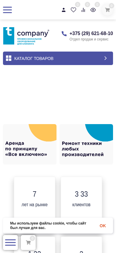 | SEO-описание | Вся необходимая техника для клининга в каталоге t-co.by. Лучшее качество оборудования, возможность аренды, обслуживание и ремонт. Свяжитесь с нами: +375 (44) 522-76-41. |