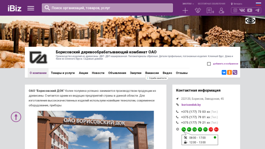 | AI-анализ | --- This online resource is dedicated to Borisovsky Derevoobrabotyvayushchiy Kombinat OAO, a Belarusian company specializing in the production of wooden items from trees. The company offers various types of wood processing, including DVP (timber), DVP kashirnaya (painted timber), obreznye pilomaterialy (sawn timber), profile and pojonazhnye izdeliya (panel and furniture parts), and kleynyi brys (laminated timber). Additionally, the company produces and sells homes and saunas made from kleenego brysa (laminated timber), as well as garden structures. The company's address is 222120, Borisov, Zavodskaya, 45. |