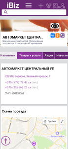| AI-анализ | --- The portal amcborisov.ibiz.by is a business website for Centralnyy UP, located in Borisov, Belarus at Zeleny Gorodok 4. The company offers auto parts stores, vehicle inspection services, and a repair station. The website provides a map for navigation, contact numbers, and the company's UNP number (690237368). The business hours are from 9:00 to 18:00, Monday through Friday, with weekends being a day off. The site includes sections for company information, products and services, and various categories such as news, vacancies, and customer reviews. The domain belongs to OOO "AIBIZ MEDIA," the Belarusian business and organization catalog. |