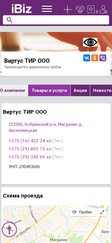 | Название / Заголовок | Виртус ТИР ООО - Производство деревянных гробов.. 225306, , Магдалин д., Киселевецкая |