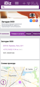 | AI-анализ | The portal is a business-to-business (B2B) marketplace for metal products and metalworking services, specifically offering metal constructions and various metal items from black and stainless steel metals. The company, named Загедан ООО, is located in Pruzhany, Belarus, at the address Лазо 22/1. The contact information includes a phone number +375 (1632) 9 34 xx. The business hours are Monday to Friday from 9:00 to 18:00 without lunch breaks. The website also provides a map for visitors to find the location and a section for user ratings and reviews. The companies in the metal industry and metalworking services are categorized under the rubrics of 'Metal' and 'Metalworking'. |