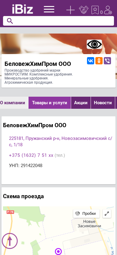 | Название / Заголовок | БеловежХимПром ООО - Производство удобрений марки МИКРОСТИМ. Комплексные удобрения. Минеральные удобрения. Агрохимическая продукция.. 225181, , Новозасимовичский с/с, 1/18 |