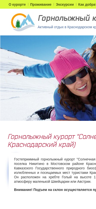 | SEO-лексика | курорт солнечная долина горнолыжный псебай краснодарский край курорте проживание санаторий березки никитино экскурсии добраться краснодарского края местоположение трассы гостевой дом |