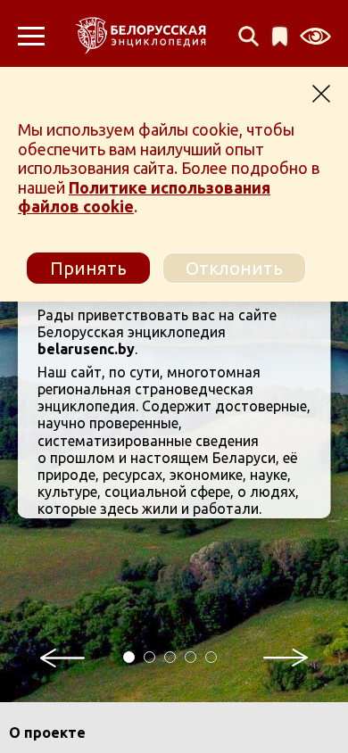 | AI-анализ | --- This website is an electronic encyclopedia containing concise and accessible information about the past and present of Belarus, its nature, resources, economy, science, culture, and social sphere, about people. The encyclopedic materials were prepared with the high potential of Belarusian domestic academic science and scientific community. The website uses cookie files to provide users with the best site experience. Belarusian Encyclopedia belarusenc.by is a multitomous regional encyclopedia of Belarus. It contains reliable, scientifically proven, systematized information about the past and present of Belarus, its nature, resources, economy, science, culture, social sphere, about the people who lived and worked here. Belarusian Encyclopedia is a space of verified and complete information about Belarus. It is intended to become a visiting card of Belarus, |