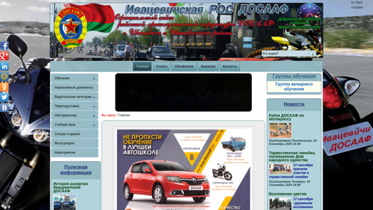 | AI-анализ | The portal Ivacdosaaf.by is a website for the Ivacevich Regional Department of the Belarusian Sports and Social Society for Assistance to the Army, Air Force and Navy (ДОСААФ) in Ivacevich, Belarus. It provides effective training for driver's licenses in categories B and C, as well as the re-certification from category B to BC and from C to CE. Additionally, the website announces the work of sports-technical clubs. The main sections of the site include information on admission, classes, instructors, fees, and practical and theoretical training. The site also provides details on the necessary documents and their costs for taking exams at the State Automobile and Road Traffic Inspectorate (ГАИ), as well as information on the history, development, and various events related to the Ivacevich DOSAA |