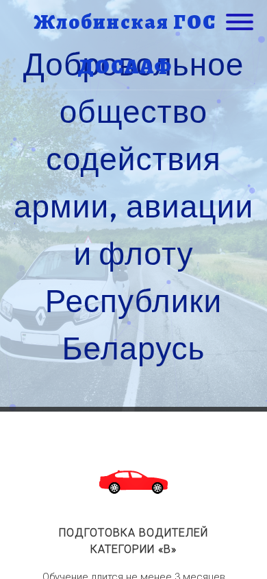 | Название / Заголовок | Жлобинская ГОС ДОСААФ — РЕСПУБЛИКАНСКОЕ ГОСУДАРСТВЕННО-ОБЩЕСТВЕННОЕ ОБЪЕДИНЕНИЕ «ДОБРОВОЛЬНОЕ ОБЩЕСТВО СОДЕЙСТВИЯ АРМИИ, АВИАЦИИ И ФЛОТУ РЕСПУБЛИКИ БЕЛАРУСЬ» |