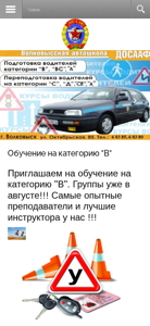 | AI-анализ | This website is the news section of the DOSAAF organization in Volkovysk, Belarus. The title of the website is "ДОСААФ Волковыск - Новости" and the description is "Хватит ходить пешком, рули с нами!" The keywords include "Автошкола," "Волковыск," "Волковысский район," "ДОСААФ," "мотокросс," "права категории "В", "С", "СЕ", "Д". Top words on the website are "досааф" (12 occurrences), "обучение" (6), "главная" (5), "волковыск" (4), "нас" (4), "акции" (4), "контакты" ( |