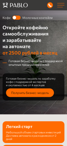 | AI-анализ | --- This online resource is dedicated to PABLO CoffeeBar, an automated self-service coffee shop. The business model offers coffee and milk beverages, with Finnish-style machines. The website provides information about the company, the coffee, and the business model. It promotes opening a self-service coffee shop and earning a monthly income of 2500 rubles. The business model is provided with the support of experienced entrepreneurs and offers a quick return on investment within four months. The business model also boasts advantages such as autonomy, ease of use for both the owner and clients, compact size, and low risks. The coffee machines work with fresh milk and quality coffee, ensuring a great taste for customers and higher conversion rates than competitors. Additionally, the website mentions the opportunity to expand a network of self-service coffee shops with the help of experts. The domain is registered as pablocoffeebar |