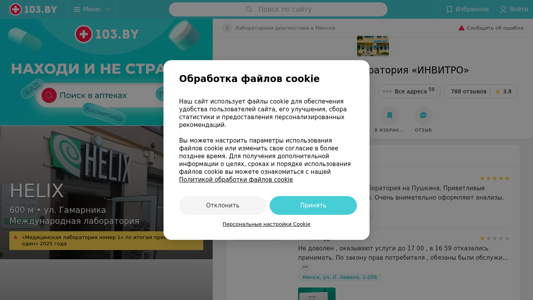 | AI-анализ | The portal invitro-14.103.by is a medical diagnostic center located at ul. Logoysky Trakt 25 in Minsk, Belarus. The website provides phone numbers, working hours, and customer reviews for the Independent Laboratory INVITRO. Visitors can also view a map showing the location of the lab. The lab is named as a recipient of the 'Number One' award in 2025 for its international medical laboratory, HELIX, located 590 meters and 1.0 km away from the main lab respectively on Logoysky Trakt and the Independence Prospect. The lab offers a loyalty program for regular clients called 'Healthy Cashback'. The website includes a search function, a favorites list, and a login feature. The lab has received 788 reviews with an average rating of 3.8 out |