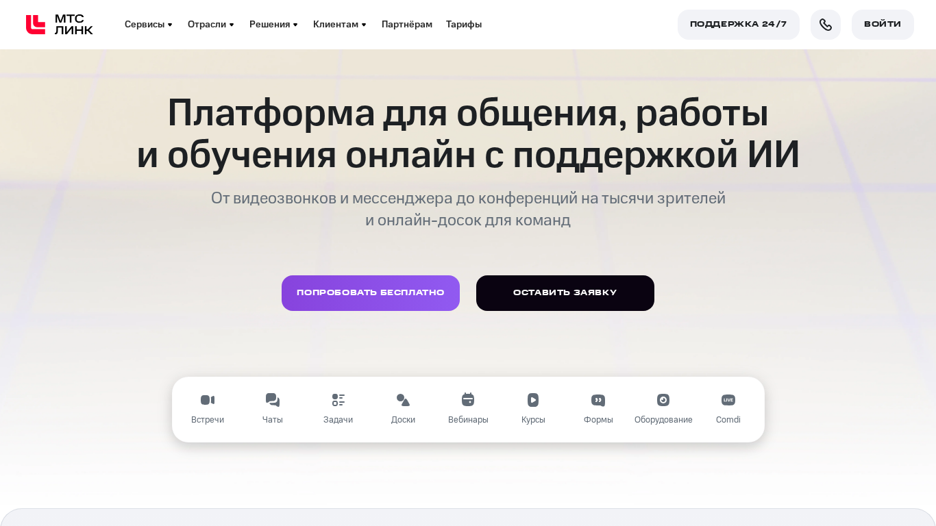 | SEO-описание | МТС Линк: проведение встреч и совещаний, вебинаров, курсов и мероприятий, корпоративный мессенджер и онлайн-доски, конструктор форм и опросов. Сервисы МТС Линк: Встречи, Вебинары, Чаты, Доски, Курсы, Формы и Comdi. |