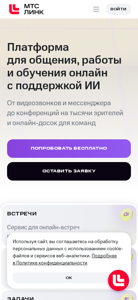 | AI-анализ | This online resource is MTS Link, a Russian platform for business communications and collaborative work. It offers services for conducting meetings and conferences, webinars, courses, and events, as well as corporate messengers and online bulletin boards. MTS Link provides the following services: Meetings, Webinars, Chats, Boards, Courses, Forms, and Comdi. The industries served include Healthcare, Education, Government, Finance, Trade, IT, and Solutions with Artificial Intelligence, Corporate Training, and Large Business. It offers free trials and support 24/7. The platform supports communication, collaboration, and online training from video calls and messaging to large conferences for thousands of attendees and online bulletin boards for teams. Services include Meetings (an online meeting and conference service), Chats (a corporate messenger), Boards (an online bulletin board), Webinars |