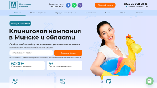 | SEO-описание | Клининг в Минске и области. Выгодные цены. Быстрый выезд. Поддерживающая и генеральная уборка. Мойка окон. Звоните! +375 25 502 22 15 |