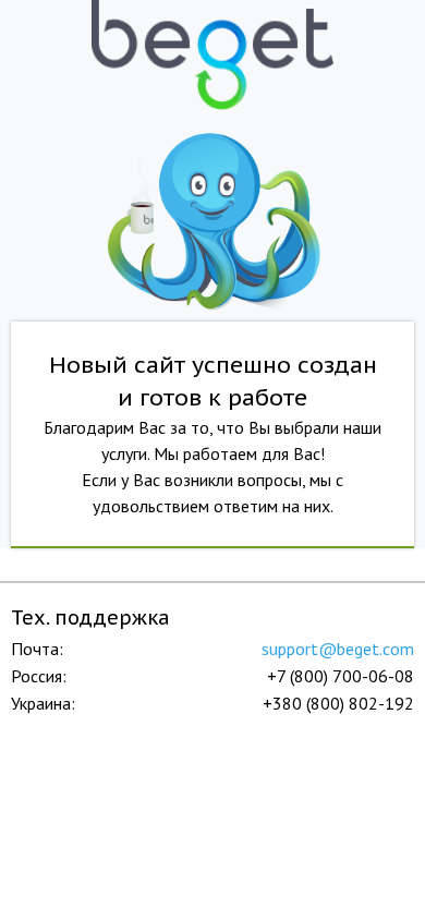 | SEO-лексика | beget com 800 вас 380 новый сайт успешно создан готов работе тех поддержка support россия 700-06-08 украина 802-192 панель управления |