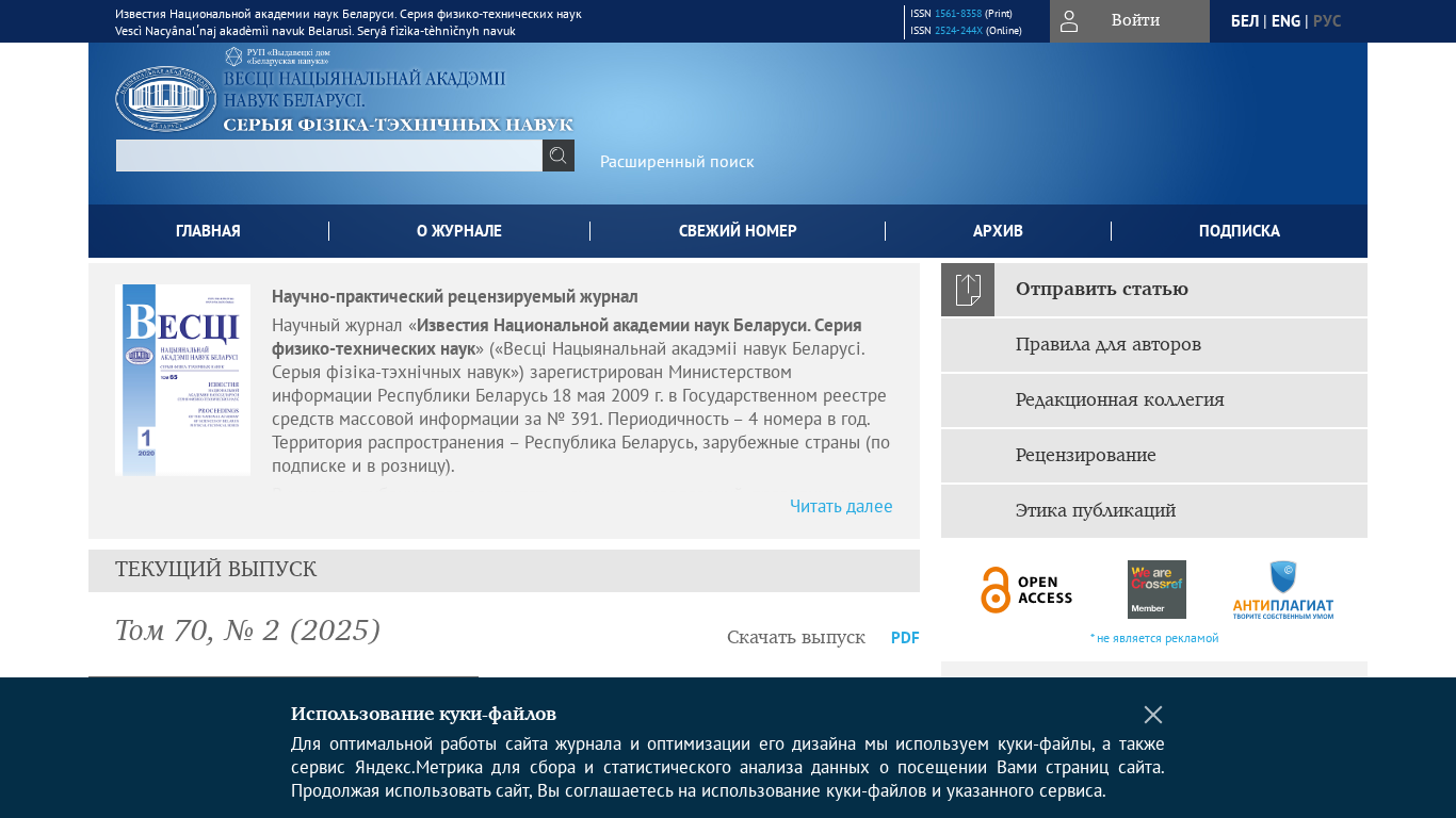 | Название / Заголовок | Известия Национальной академии наук Беларуси. Серия физико-технических наук |
