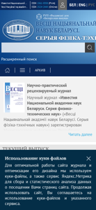 | AI-анализ | The web project "Известия Национальной академии наук Беларуси. Серия физико-технических наук" is a scientific, peer-reviewed journal. It covers research in various fields of physical and technological sciences, including material science and machinery, energy, mechanics, thermal and mass exchange, information technologies, electronics, instrumentation, nanotechnologies, technical diagnostics, non-destructive testing, safety of technical systems and natural objects. The journal is published by the National Academy of Sciences of Belarus and is registered with the Ministry of Information of the Republic of Belarus in 2009. It has a print ISSN of 1561-8358 and an online ISSN of 2524-244X. The journal is published quarterly and is distributed in the Republic of Belar |