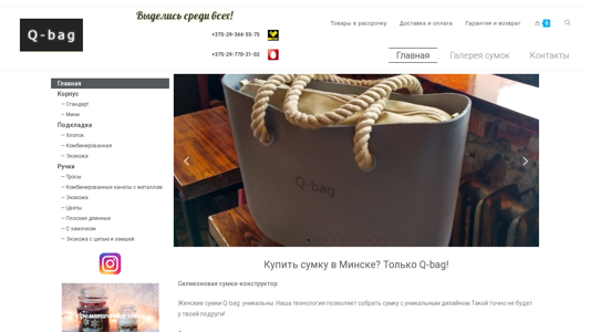 | AI-анализ | The title of this website is "Купить женскую сумку в Минске — Модные силиконовые сумки q-bag". The description mentions "модные силиконовые сумки q-bag" and provides contacts for delivery, payment, and customer service. The website offers bags with various features, including standard and mini sizes, different types of linings, and various types of handles. The website also mentions that bags are made of silicone, which makes them lightweight, durable, easy to clean, and resistant to temperature changes. The website is available at q-bag.by. |