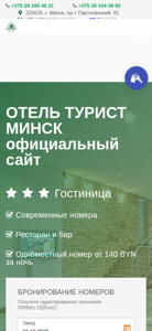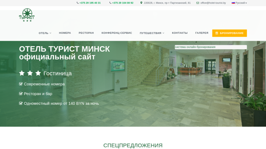 | AI-анализ | This website is the official online presence for Hotel Tourist in Minsk, Belarus. The title is "Hotel Tourist, Minsk" and the description includes keywords related to the hotel such as "отель" (hotel), "минск" (Minsk), and "бронь" (booking). The top words indicate that the website features information about the hotel's rooms, restaurant, and location in Minsk, as well as services like conference facilities and excursions. The website also offers online booking and various special offers. The website is operated by "наш" (our) hotel and provides contact information, including phone numbers and an email address. The website is available in both Russian and English and offers a menu for easy navigation. The hotel complex provides additional services like Wi-Fi, baggage storage, and a children's bed. The website also features news and information |
