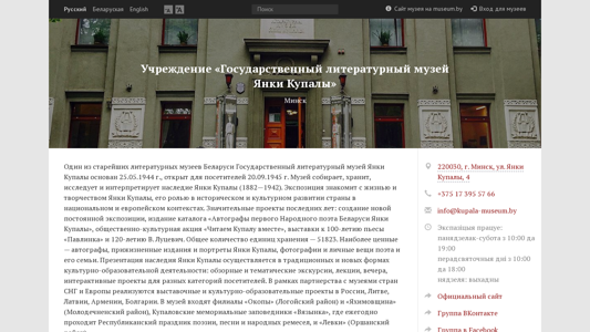 | SEO-описание | Учреждение «Государственный литературный музей Янки Купалы» — новости и афиша мероприятий, информация для посетителей, цены, экспозиция, коллекции, материалы для музейщиков. |