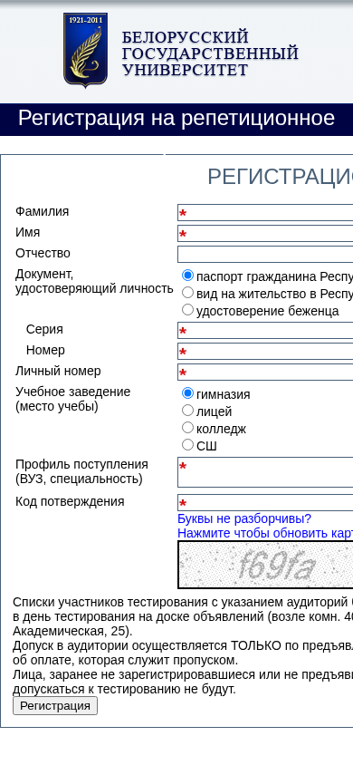 | SEO-лексика | мест свободных нет язык тестирования беларусь номер будут история регистрация репетиционное тестирование регистрационная карточка участника фамилия имя отчество документ удостоверяющий |