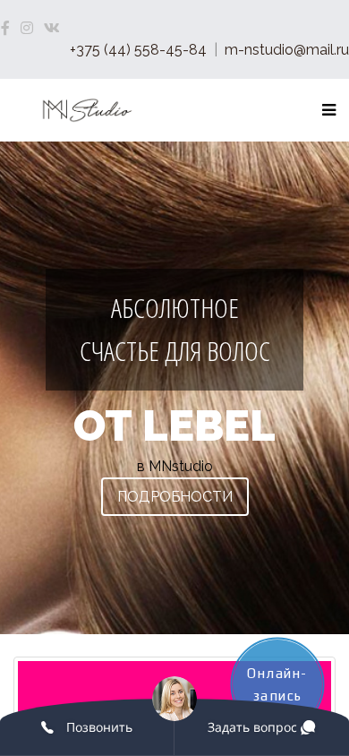 | AI-анализ | The portal MNstudio is a beauty studio offering a full range of hairdressing services, makeup, manicure and pedicure, eyelash extension, and complete image creation. The studio, operated by Mashe and Nina Botvinkikh, is located in Belarus and provides services such as hair cutting for short, medium, and long hair; Brazilian Blowout and Goldwell straightening treatments; hair styling and wig making; spa treatments for the hair and body; brow bar services for makeup and eyelash dyeing; and a nail salon for manicures and pedicures. The studio also offers a massage parlor, children's services, and educational courses for those interested in the beauty industry. The studio has been featured in various media outlets and offers gift certificates and master classes for special occasions. The website provides detailed information about the services offered, pricing |