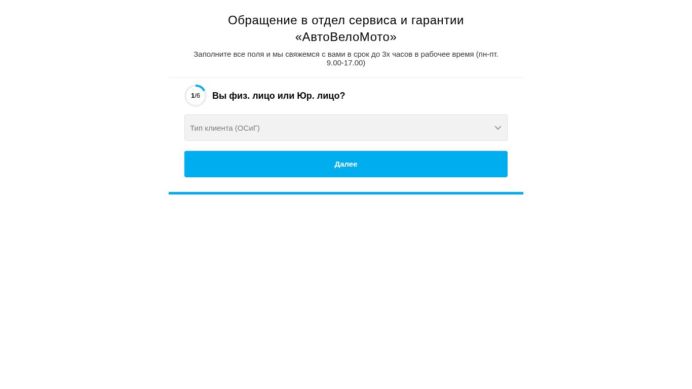 | SEO-лексика | лицо обращение отдел сервиса гарантии автовеломото заполните все поля свяжемся вами срок часов рабочее время пн-пт 00-17 физ тип клиента |