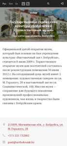| Адрес | г. Бобруйска», считается 8 июля 2009 г. Торжественное открытие музея для посетителей состоялось после реконструкции помещени |