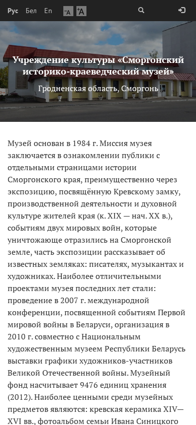 | Название / Заголовок | Учреждение культуры «Сморгонский историко-краеведческий музей» |