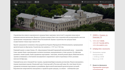 | SEO-описание | Новый замок — новости и афиша мероприятий, информация для посетителей, цены, экспозиция, коллекции, материалы для музейщиков. |