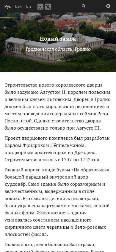 | AI-анализ | The portal New Castle provides news and event schedules, information for visitors, prices, exhibitions, collections, and materials for museum professionals. The website is dedicated to the history and description of the New Castle in Grodno, Belarus. The construction of the royal palace was initiated by Augustus II, King of Poland and Grand Duke of Lithuania, in the early 18th century as a royal residence and venue for general assemblies of the Polish-Lithuanian Commonwealth. However, the palace was built only under Augustus III. The architectural design was created by Karl Friedrich Pöppelmann, a court architect from Dresden. The construction took place from 1737 to 1742. The main building, in the shape of the letter 'P,' formed a large parade inner courtyard, or cour d'honneur. The building was grand and maj |