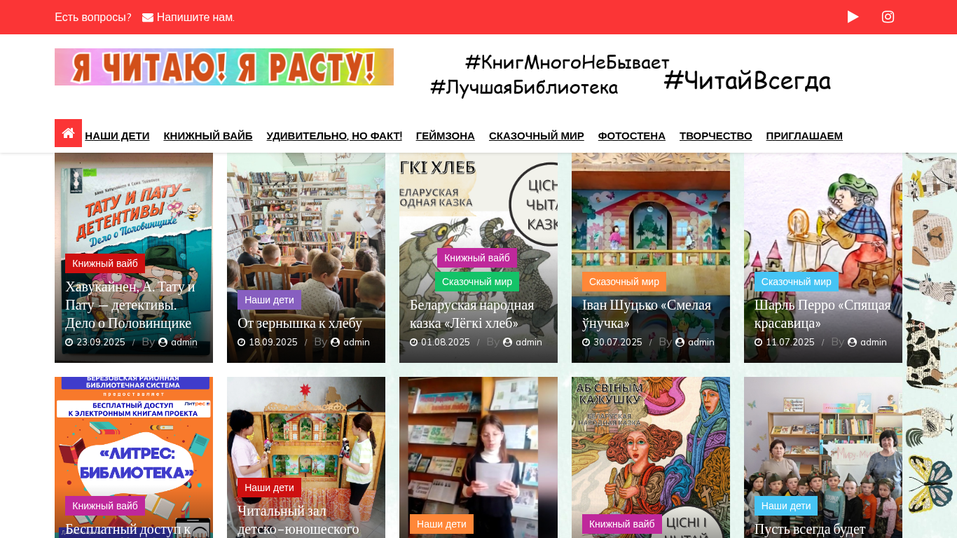 | AI-анализ | This online resource, titled "Я ЧИТАЮ! Я РАСТУ!" (I Read! I Grow!), is a Belarusian website primarily focused on children's literature and related activities. The description section mentions various book titles and authors, including works by Belarusian folklore and famous children's literature like "The Sleeping Beauty" by Charles Perrault. The website also offers free access to "ЛитРес: Библиотека" (LitRes: Library). The main content seems to be articles and blog posts about books, reading, and related topics. Additionally, there are mentions of detectives Haavukainen, Tatu, and Patu, and a reference to a book titled "10 пытанняў пра звяроў: частка 2" (Ten Questions About Animals: Part 2 |