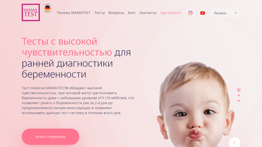 | AI-анализ | The website mamatest.by is dedicated to pregnancy and ovulation testing in Belarus. It provides information on the best tests for these purposes in Minsk and Belarus. The site includes sections on FAQs, a blog, and contacts for purchasing the tests. It highlights the importance of early detection in pregnancy through tests with high sensitivity, such as test-strips from MAMATEST. These tests can detect pregnancy even with a low level of hCG (10 mMol/mL), allowing for early identification and the use of the test system throughout the day. The site also offers guidance on recognizing early pregnancy symptoms and planning for conception. |