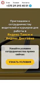 | AI-анализ | This online resource is an official partner of Yandex.Taxi and Yandex.Delivery in Belarus. The website provides information about joining these services as a driver or courier. It offers partnership conditions and contacts for inquiries, including a phone number and email address. The commission for drivers and couriers is stated as 17.9%, including tax payments. Payments are made weekly. Potential applicants are encouraged to submit an application with their contact details. |