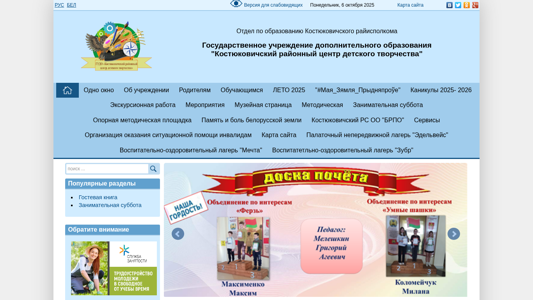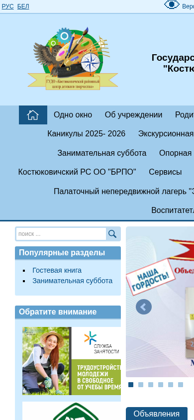 | AI-анализ | This online resource is the official website of the Kostyukovichy District Cultural and Educational Center (КOSTЮКОВИЧСКЫ РАЙОННЫ СПЦ) located in Belarus. The title of the site is written in Belarusian. The description includes keywords related to the district, education, and culture. The most frequent words on the site are "далее" (further), "читать" (to read), "круглосуточно" (round-the-clock), "область" (region), "новости" (news), "костюковичский" (Kostyukovichy), "помощи" (assistance), and "районный" (district). The site also appears to have information about the Krymska Tarasian language and culture, |